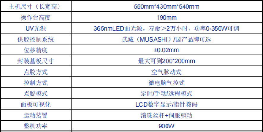 1.点胶系统与紫外固化系统一体化设计,减小设备占用面积,节省手套箱使用空间(可集成与手套箱内);