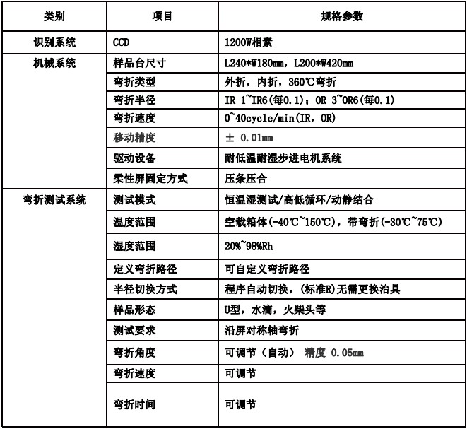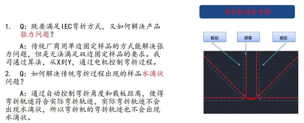 1.柔性弯折测试设备主要用于检测柔性屏及薄膜等产品的弯折寿命,评估产品在多次弯折后性能的变化,可集成亮度计实时监测柔性屏等在弯折过程中光电性能的变化,也可集成拉力计以监测薄膜在弯折过程中的拉伸应力。