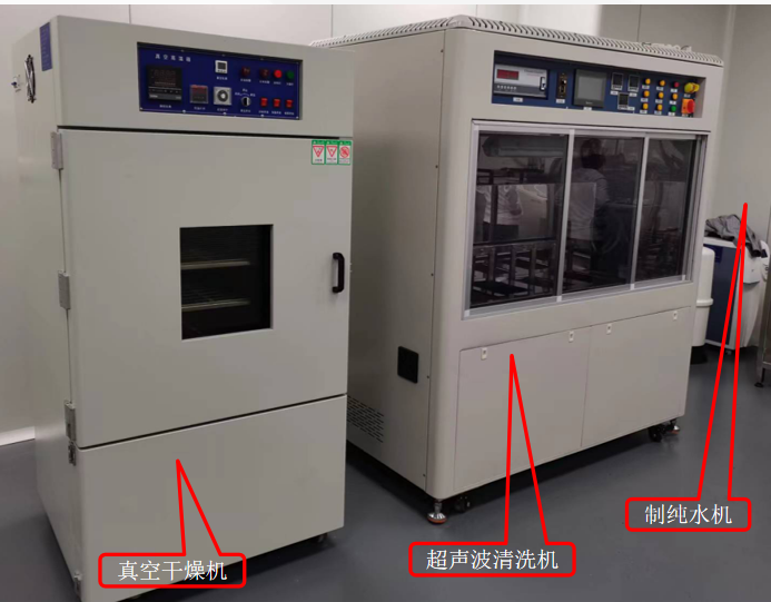 ✱ “超声波清洗机”设有三个水槽(水槽可定制),一个槽装有腐蚀性强酸性或强咸性液体,二个槽装有UP超纯水或者RO纯水,具备超声、抛动、加温等功能,时间可设定,自动加液和排液,三槽可独立操作。还配备了水枪和氮气枪,便于手动作业。设备可存储多个设定好的文件,一键启动,作业方便